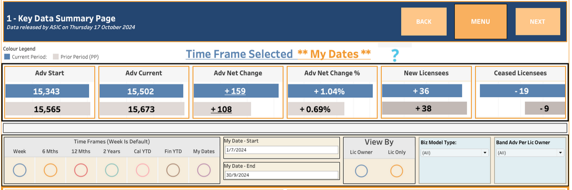 While saying this quarter’s growth is encouraging, Williams cautions against relying on start dates of new years due to the high number of advisers ceasing at year-end. For example, just shifting the start date to June 23, saw numbers down 65 to September 30, 2024, compared to minus 97 in 2023.